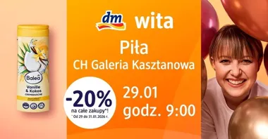 - Promocja powitalna: 20% powitalny rabat na całe zakupy w drogerii stacjonarnej dm przy al. Powstańców Wielkopolskich 99. Rabat obowiązuje od 29.01.2026 do 31.01.2026 i jest naliczany automatycznie przy kasie.